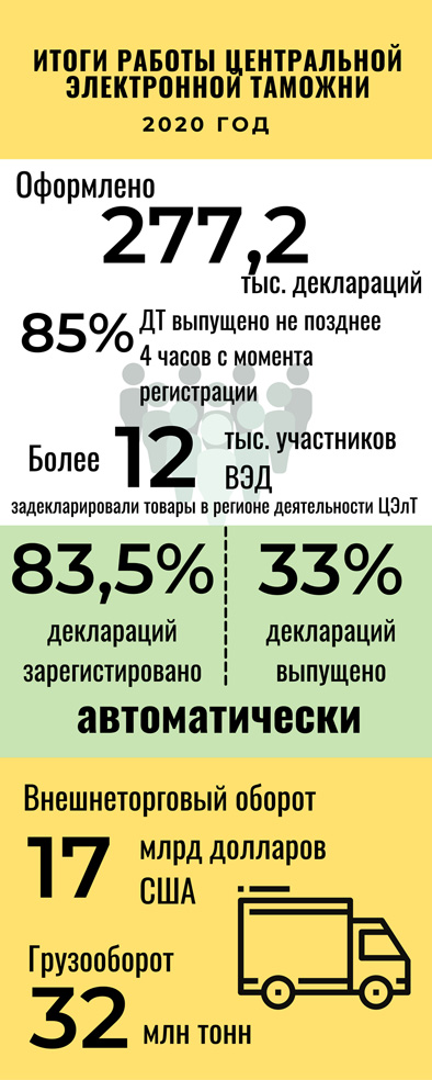 Электронное декларирование способствует ускорению таможенного оформления товаров: среднее время автоматической регистрации составляет до 3 минут, а время автоматического выпуска - до 2 минут.