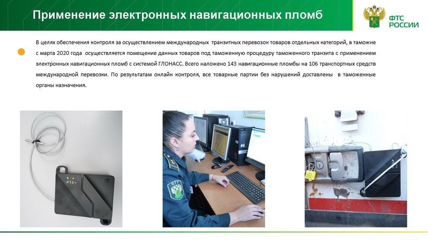 За отчетный период проведено 3007 таможенных досмотров, завершена процедура таможенного транзита по 51325 ТД, выпущенных в электронном виде. Проведено 59 проверочных мероприятий после выпуска товаров, в том числе 28 на внутреннем рынке.