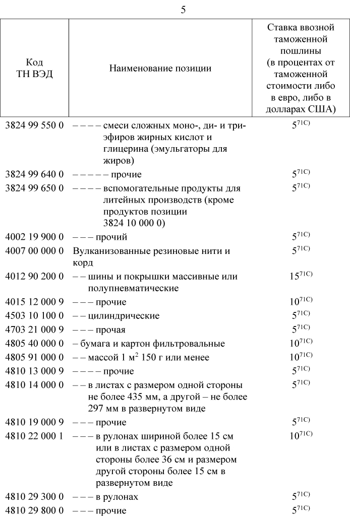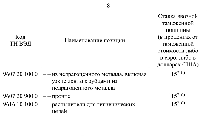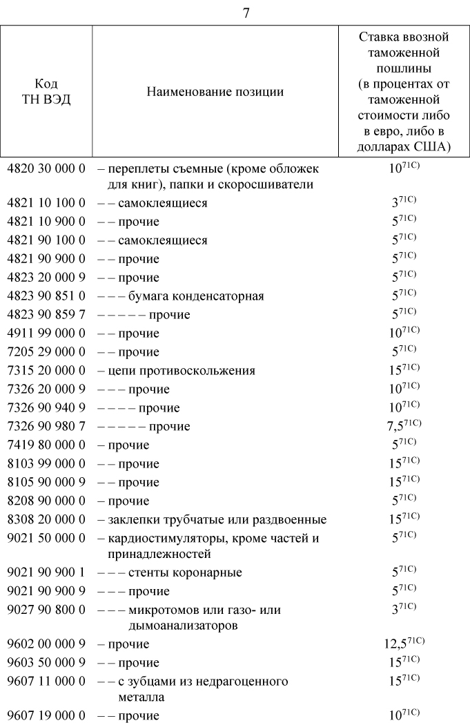 "71С) Ставка ввозной таможенной пошлины в размере 0 (ноль) % от таможенной стоимости применяется с 01.10.2022 по 31.03.2023 включительно.".
